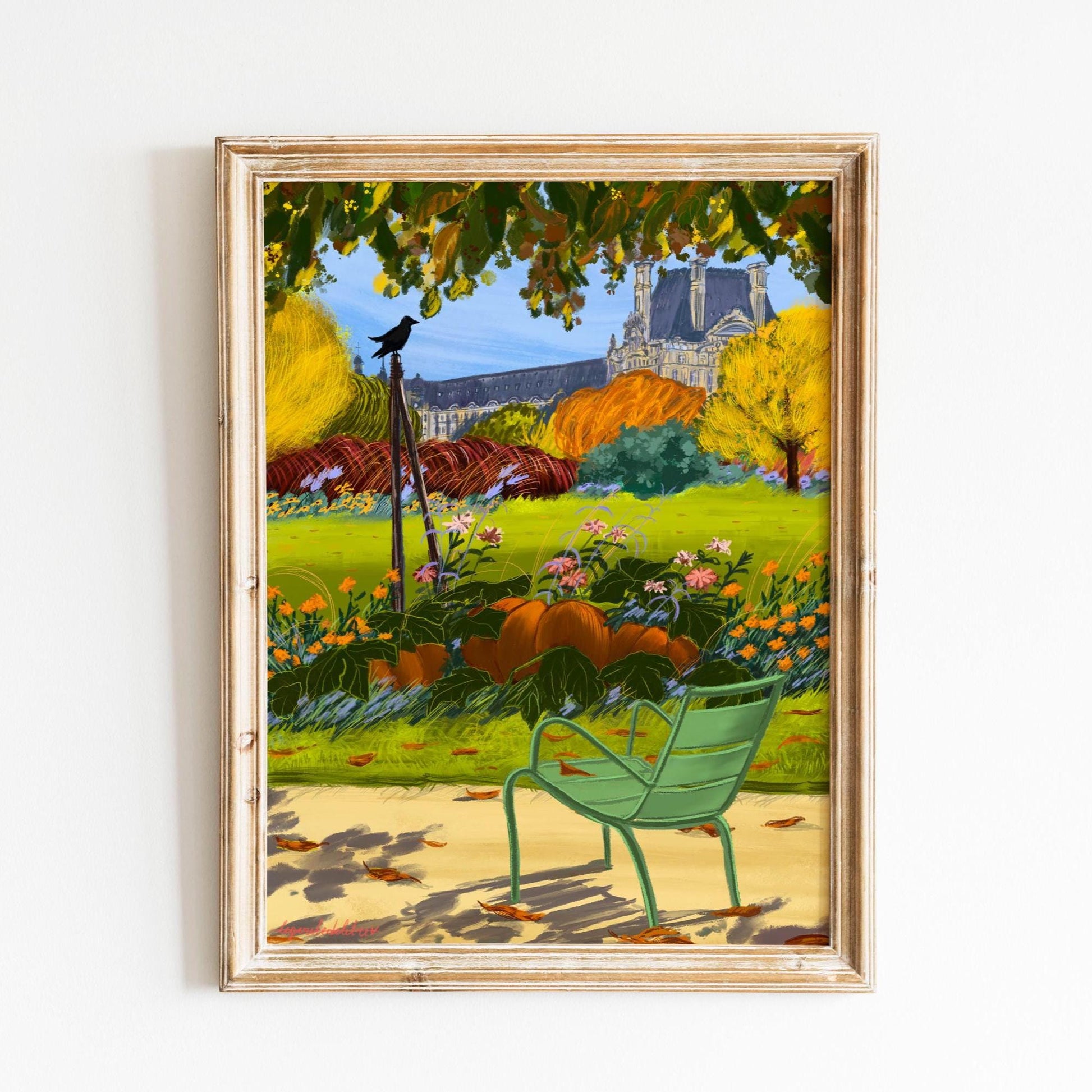 Autumn Poster Paris |Tuileries Garden:Crown and Pumpkin illustration|Fall season Paris Wall Art| A3 A4 sizes| Autumn memory from Paris