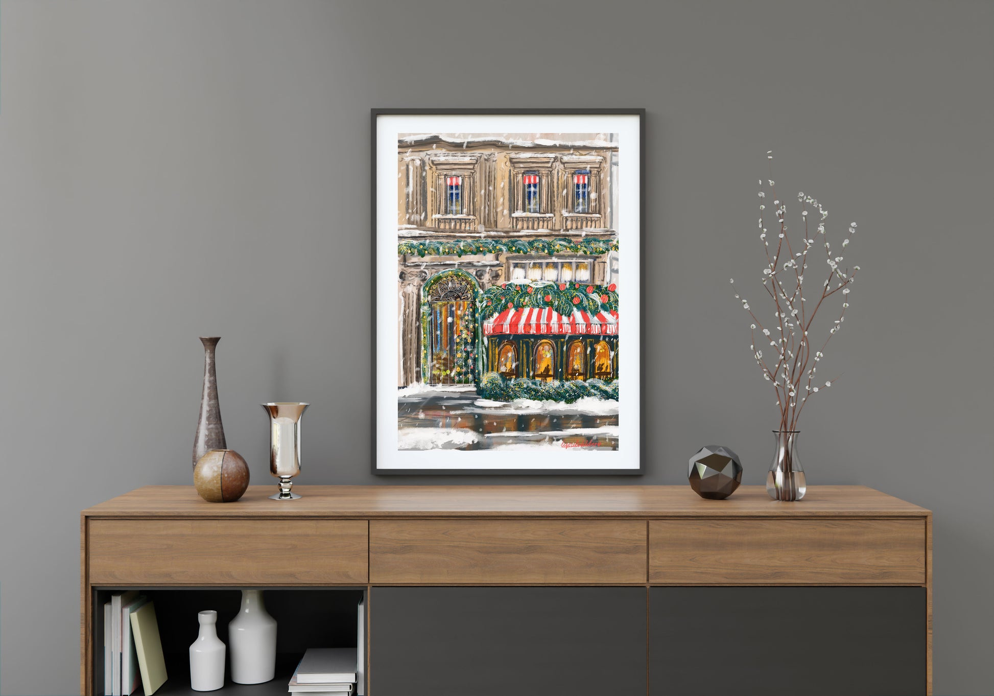 Parisian Christmas Scene art poster|A Snowy Holiday Moment in Paris |Festive Winter Wall Art